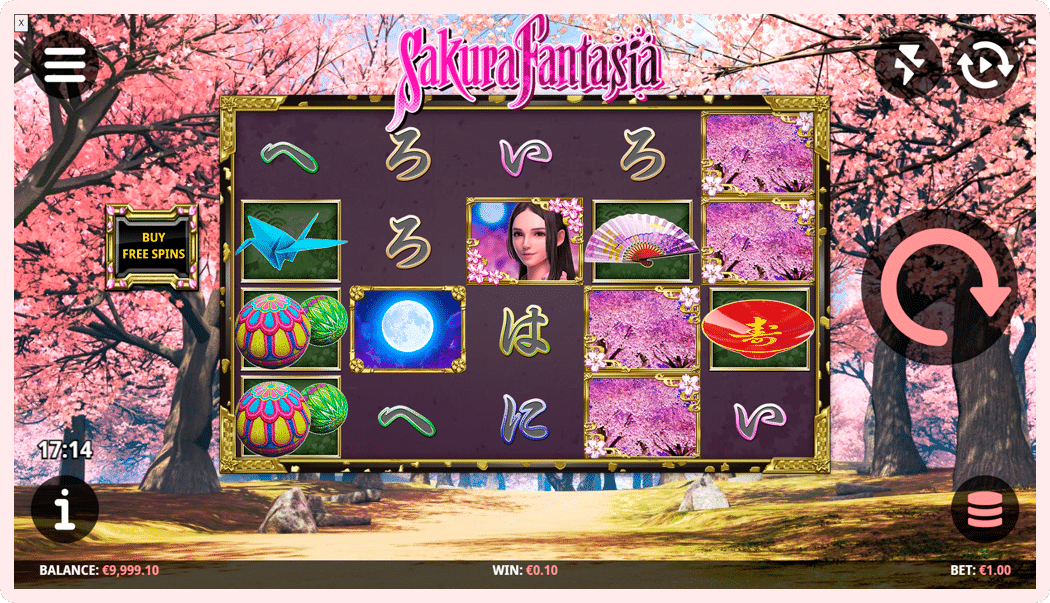 SAKURA FANTASIA has a 4x5 reel layout with 1024 ways to win and a multi-level FREE SPINS FEATURE.